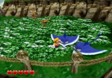 Stingray appears exclusively in the level Beanstalk Way they swim through tall grass and attack Wario by dashing towards him when they swim very close to the ground they can be hit by a ground pound or wild swing ding. After being hit by three ground pounds, they are stunned however ground pounding is dangerous in areas they appear, as missing will result in Wario getting stuck in the tall grass for a few seconds. Big Scorper behaves similar to the Stingray.